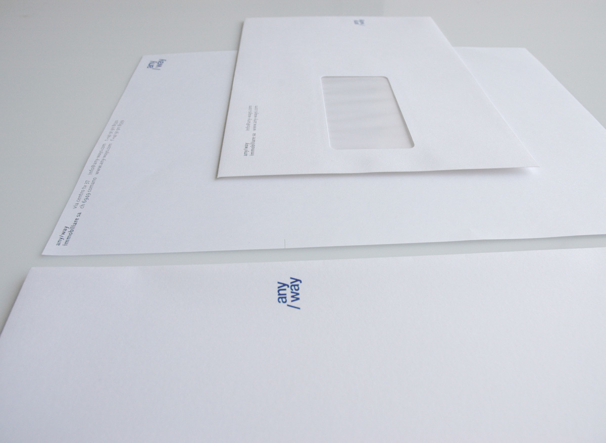 Erscheinungsbild für das Immobilienbüro anyway Briefausstattung mit Block und Mappe. Das Immobilienbüro für besondere Menschen die besonders Wohnen erhält ein besonders auffälliges Design. Die Buchstaben fungieren als Konstruktionselemente. « zurück zur Übersicht