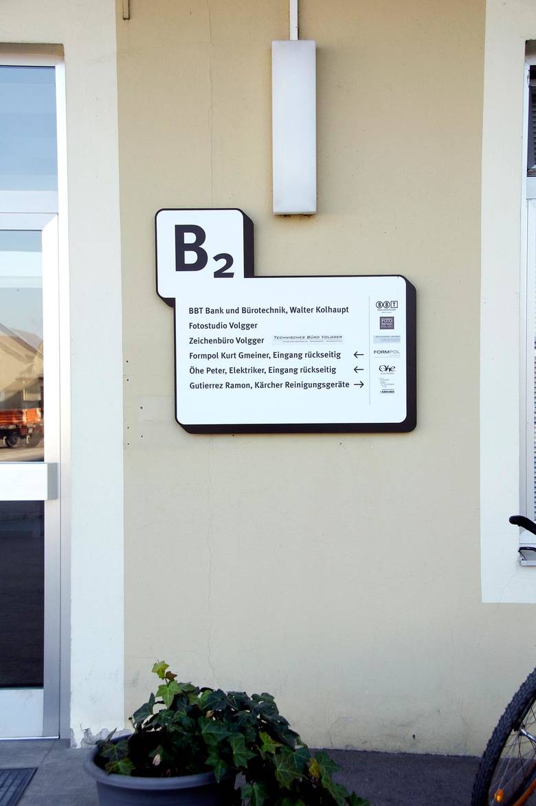 Signaletik, Fussenegger Areal 23 in Dornbirn