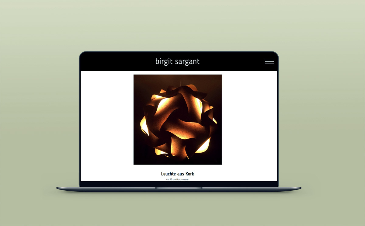 Neben dem Schriftzug durften wir für Birgit Sargant ihren Webauftritt gestalten. Jetzt kann sie ihre wunderschönen, handgefertigten Leuchten optimal online präsentieren sowie über ihre weiteren Aktivitäten wie Workshops informieren. Reinschauen lohnt sich also.