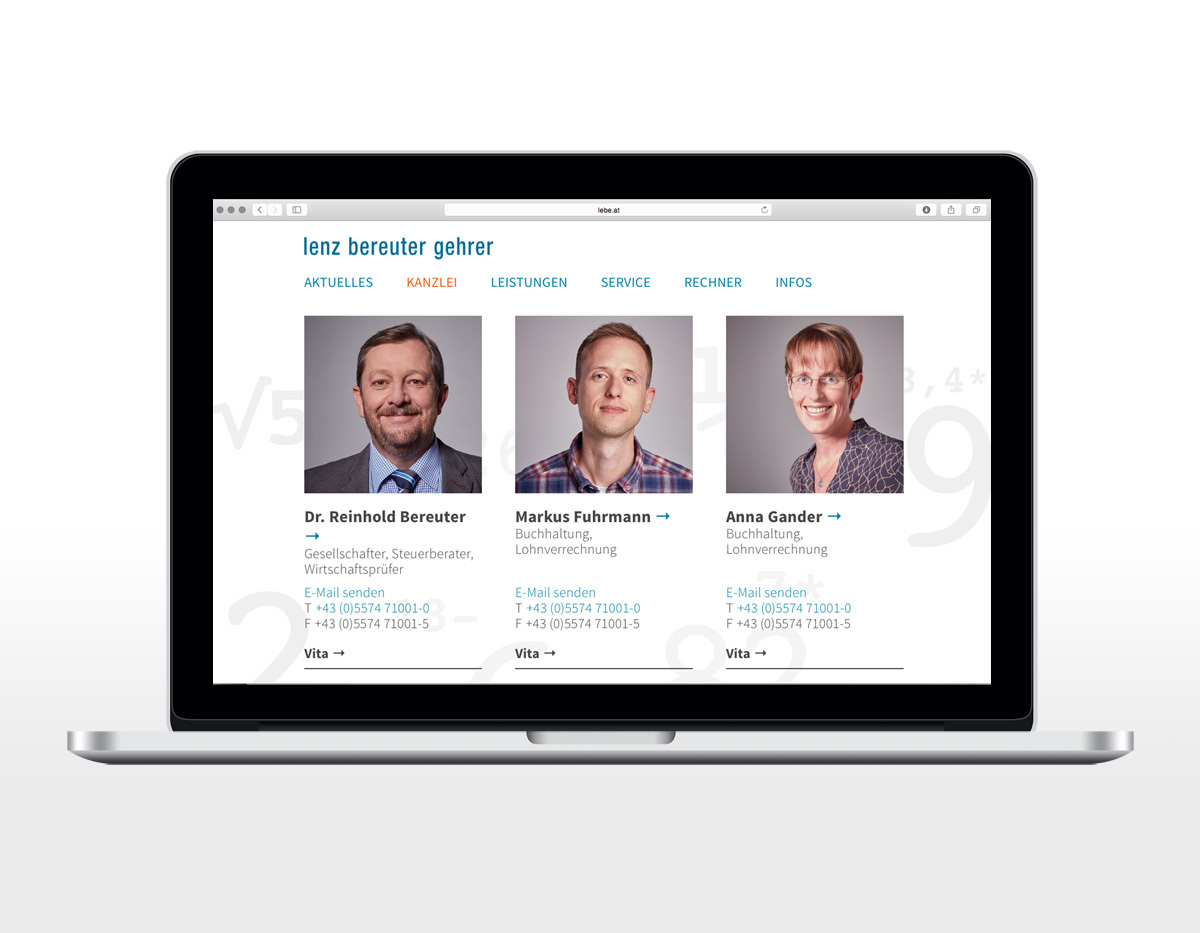 Wir durften die neue, frische Webseite der Kanzlei Lenz, Bereuter, Gehrer in Dornbirn und Hard gestalten. www.lebe.at